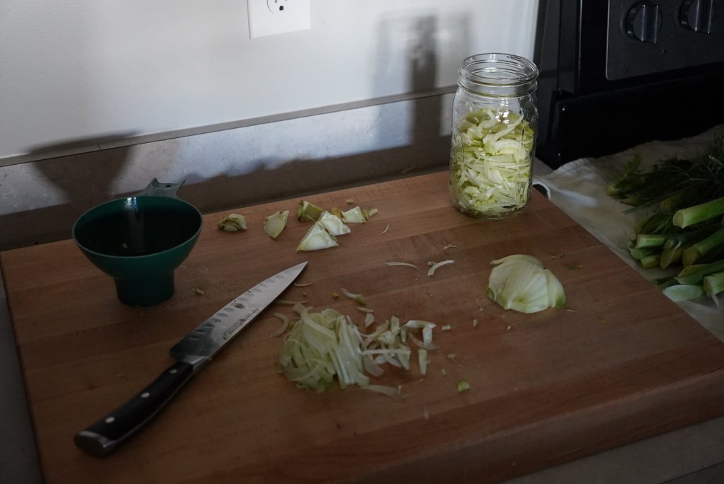 The fronds were huge and I immediately knew I wanted to lactoferment them. My partner dropped off a few mason jars last night and the timing was perfect.