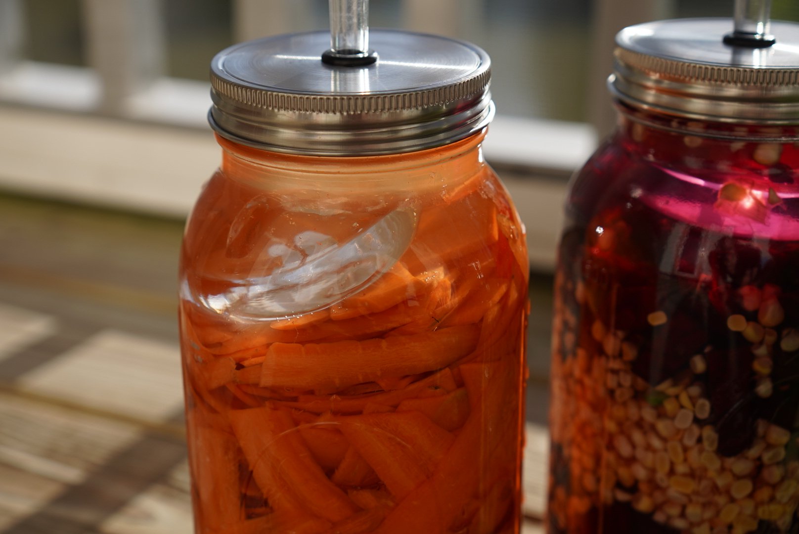 Everything was brined in a 2% salt solution, as usual. I’ll give them 7-10 days before tasting. Hopefully they’ll retain color but ferments usually dull a bit in color over time.