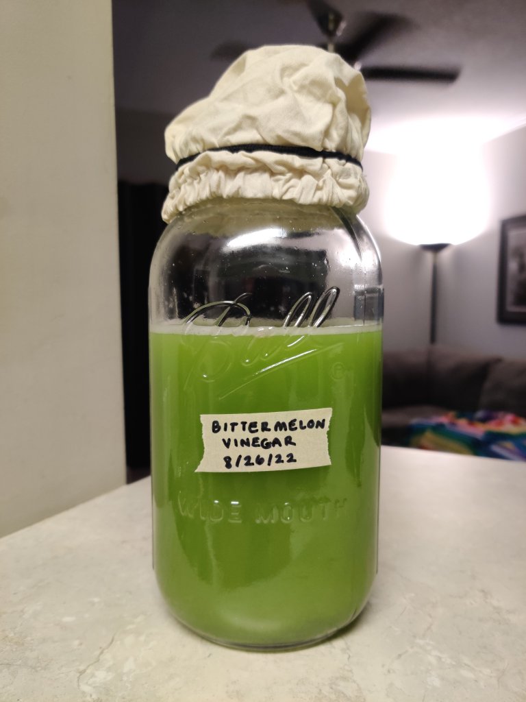 Last week, I decided it was time to dance the dance and begin fermenting with bittermelon. I’ve experimented a bit with basic wine making but haven’t tried vinegars yet.